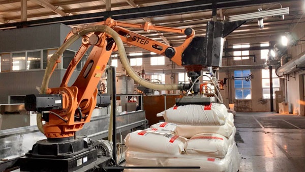 防排水板智能拆垛上料裝備。該設備有針對性地設計了防排水板自動拆垛上料系統(tǒng)的軟硬件組成,尤其是機器視覺、電控和機器人方面,完成了系統(tǒng)的部署及應用。在機器視覺識別精準性方面,料袋中心的平均定位誤差不超過2.5cm。在運行速度方面,袋料的平均拆垛上料時間在50秒以內(nèi)。