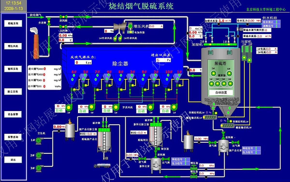 煙氣脫硫控制系統(tǒng)。該系統(tǒng)可根據(jù)企業(yè)不同煙氣溫濕度及二氧化硫氮氧化物等成分不同的實(shí)際工況,通過算法優(yōu)化控制方法,提高脫硫系統(tǒng)的自動化程度,在保證脫硫效率的前提下,降低原材料和能源的消耗,降低脫硫系統(tǒng)的運(yùn)行成本。